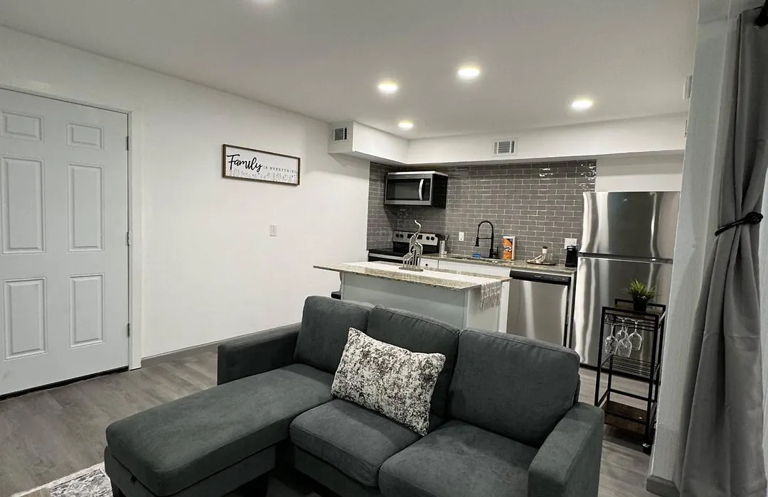 El apartamento Br Dallas incluye una cocina completa donde los huéspedes pueden cocinar y disfrutar de comidas caseras.